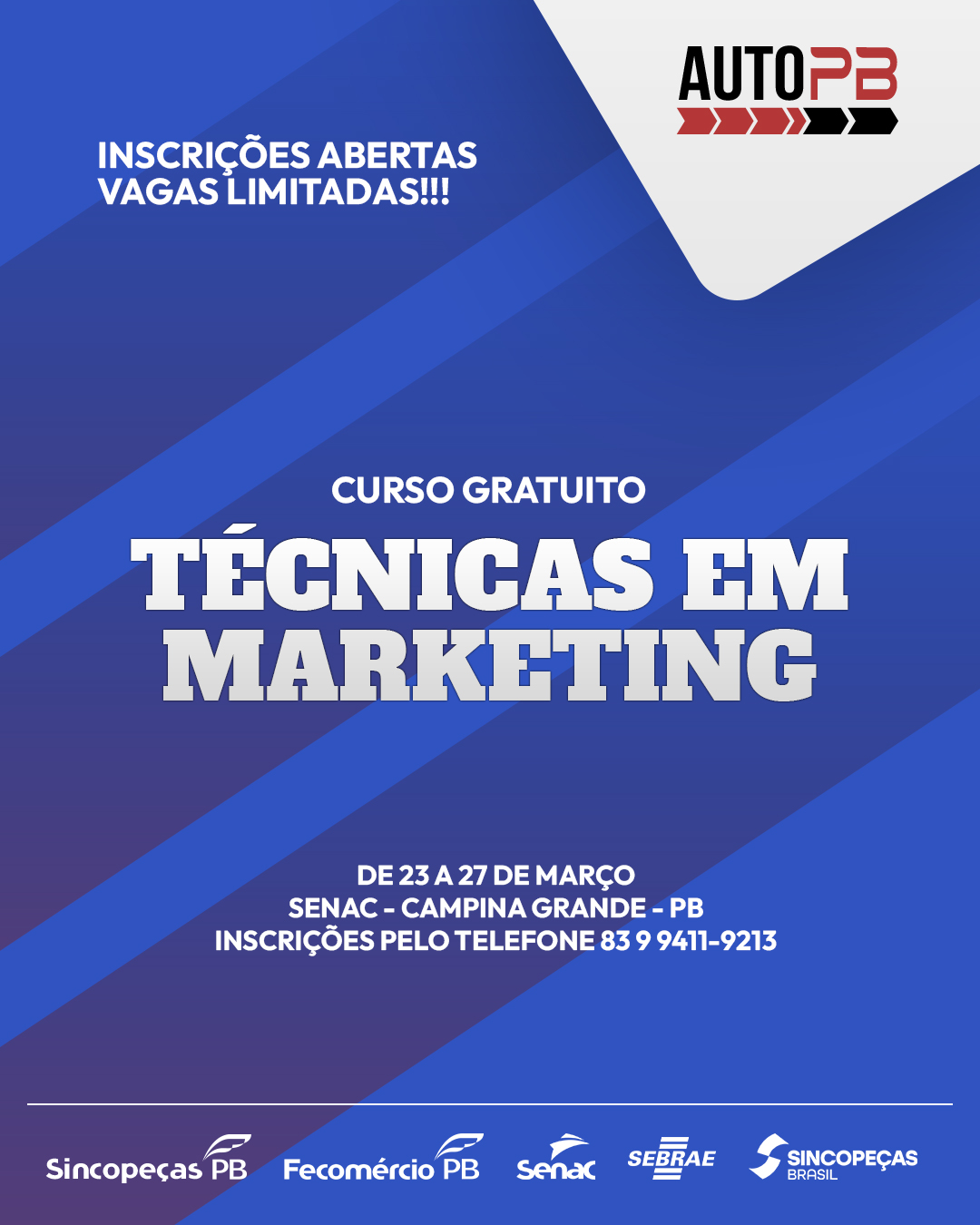 De 23 a 27 de março de 2026, acontece no Senac Campina Grande o Curso de Técnicas de Marketing, uma capacitação voltada para profissionais e empresários que desejam aprimorar suas estratégias de divulgação, posicionamento e relacionamento com o cliente.